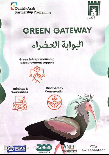 ويرتكز مشروع " البوابة الخضراء للشباب والتنوع البيولوجي " على ثلاثة محاور رئيسية تتعلق بتعزيز مهارات الشباب عبر تكوين المدربين وحراس البيئة في المنتزهات الوطنية وتشجيع ريادة الأعمال الخضراء من خلال مرافقة وتمويل 35 شابًا حاملاً لمشاريع مبتكرة بالمنتزه الوطني لإفران إضافة إلى المساهمة في المحافظة على الأنواع المهددة بالانقراض مع إعطاء الأولوية لطائر أبو منجل الأصلع وهو طائر ذي رمزية حيث تعيش بالمغرب آخر مجموعة برية له في العالم.