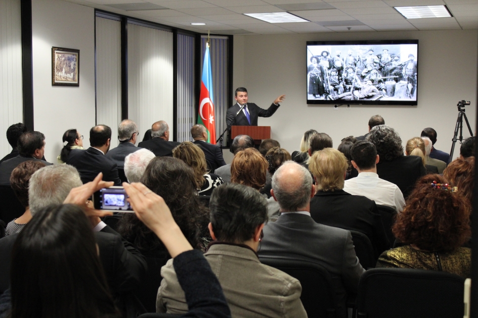 Opening the event, Consul General of Azerbaijan in Los Angeles Nasimi Aghayev welcomed the guests and talked about the history of the genocide committed against Azerbaijanis in 1918. Aghayev noted that following the October Revolution in Russia in 1917, Baku was invaded by Bolshevik forces, who created an alliance with Armenian Dashnaks. “Baku was the main target for Bolsheviks because of its vast oil reserves. As Vladimir Lenin famously said, ‘Bolshevism can not survive without Baku oil’,” Aghayev said. “However the main obstacle to the full and unimpeded control of Baku was the city’s Azerbaijani Muslim population. So the Bolsheviks and Armenian Dashnaks decided to resort to the ‘final solution’ of the ‘problem’. Between March 30 and April 2, 1918, Armenian Dashnaks, assisted by Bolsheviks (led by Armenian Communist Stepan Shaumyan), subjected the entire Muslim population of Baku to a brutal genocide, killing at least 12,000 Azerbaijanis, many of whom were women and children. That’s how one of the first genocides of the 20th century was committed,” Aghayev said. “The violence against Azerbaijanis was not contained only to Baku. Thousands of Azerbaijanis were massacred in other regions of Azerbaijan, including in the Quba region. Muslims were not the only victims. Around 3000 Azerbaijani Mountain Jews were also killed by Armenian Dashnaks. The reason? Because Jews sided with Azerbaijani Muslims, with whom they had lived in harmony for centuries, against Azerbaijan’s Bolshevik-Dashnak occupation,” the Consul General added. Aghayev stressed that in 2007 a mass grave containing bones and skulls of many Jewish and Muslim victims of the 1918 Quba Genocide was unearthed near the Jewish Red Town in Quba.