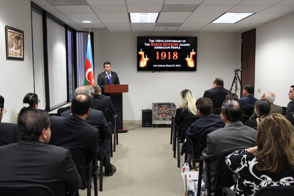 A memorial event dedicated to the 100th anniversary of the March Genocide against Azerbaijani people was held at the Consulate General of Azerbaijan in Los Angeles on March 27. The event, organized by the Consulate General, was attended by members of the Azerbaijani community, Consuls General of various foreign countries, well-known scientific and cultural figures, journalists, as well as leaders of Jewish, Turkish, Pakistani, Iranian, Vietnamese and Hispanic communities.