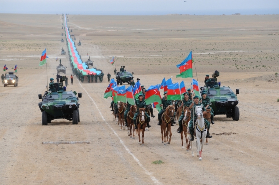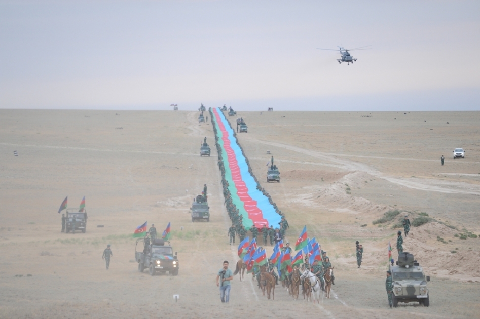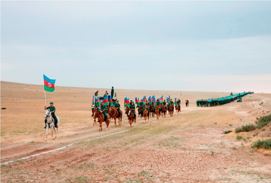 The magnificent flag marching under a slogan “Service to the motherland is our oath, our goal!” held within the framework of the events dedicated to the 100th anniversary of the Azerbaijan's border protection was a demonstration of the border guards’ determination to free the Azerbaijani lands, to restore protection of the occupied state borders and to raise the glorious flag along the state borders under the leadership of President of the Re-public of Azerbaijan, Supreme Commander-in-Chief of the Armed Forces Ilham Aliyev.