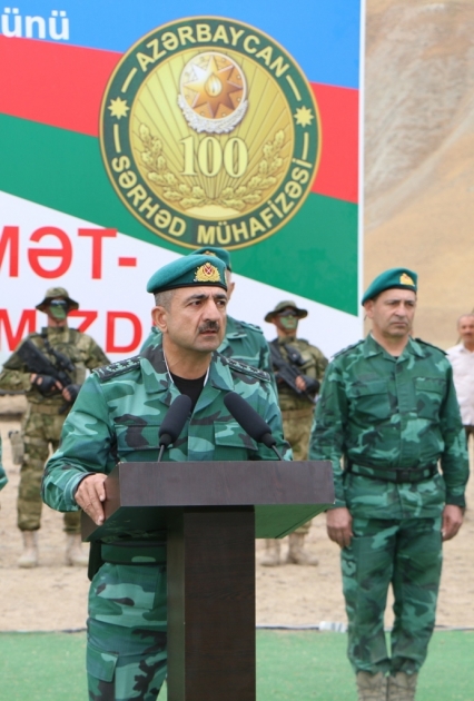 Speaking at the event, Chief of the State Border Service, Colonel-General Elchin Guliyev, congratulated the staff on the 26th anniversary of the National Salvation Day of Azerbaijani people and with a deep sense of pride commemorated the great leader Heydar Aliyev, who returned to power at the insistence of the people and restored stability in the country, prevented decline, ensured eternity and irreversibility of independence within a short period of time.