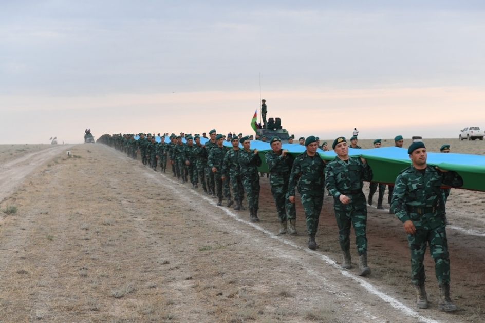 By this unique flag march Azerbaijani border guards paid tribute to the blessed memory of the great leader Heydar Aliyev and demonstrated loyalty to the national traditions of the statehood, as well as expressed sense of pride and honor on serving under the command of President of the Republic of Azerbaijan, Supreme Commander Ilham Aliyev.