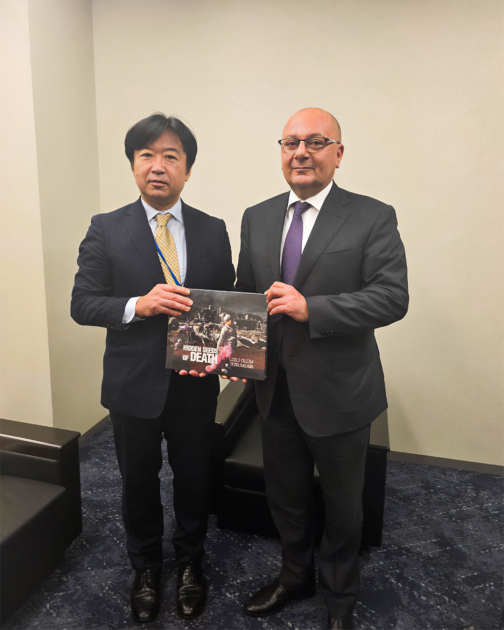 During the visit, Vugar Suleymanov met with Tobias Privitelli, Director of the Geneva International Centre for Humanitarian Demining (GICHD); Rotna Booth, Executive Director of the ASEAN Regional Mine Action Center; Rodrigue Vinet, Representative of the UN Food and Agriculture Organization (FAO); and Masaki Ishikawa, Deputy Director General of the European Bureau of the Ministry of Foreign Affairs of Japan.