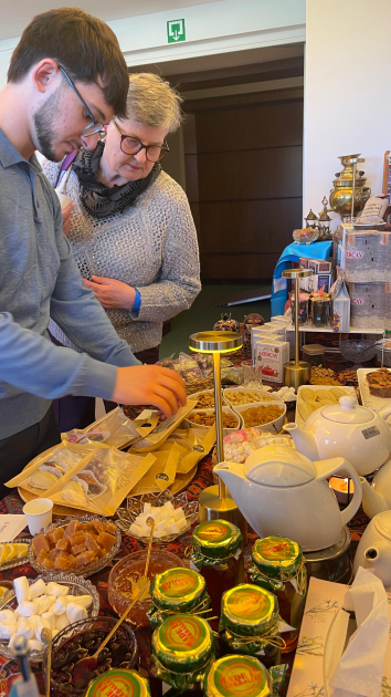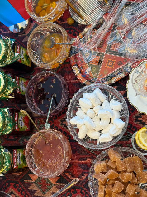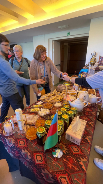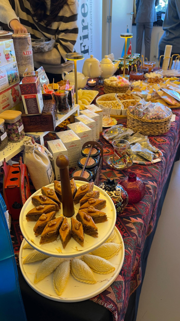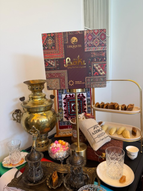 Supported by the Azerbaijani Embassy and the Azerbaijani community in Belgium, the Azerbaijani stand also featured a traditional tea table, offering sweets such as shekerbura, pakhlava, assorted jams, noghul, and homemade sugar candies. Guests were introduced to the preparation traditions behind these treats.