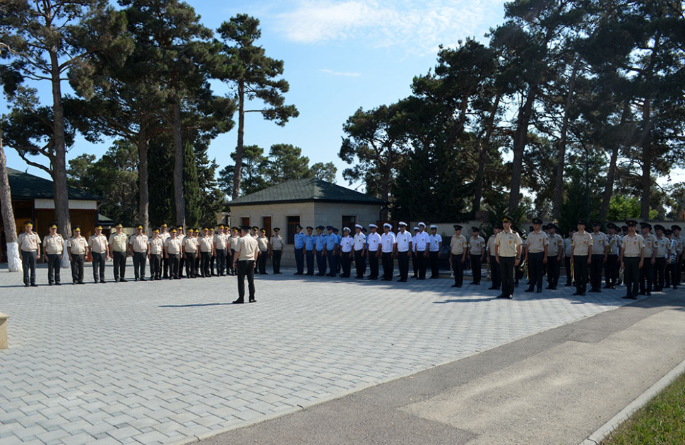 The memory of Martyrs was honored with observing a minute of silence and the National Anthem of the Republic of Azerbaijan accompanied by the military orchestra was performed.