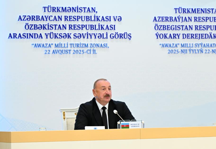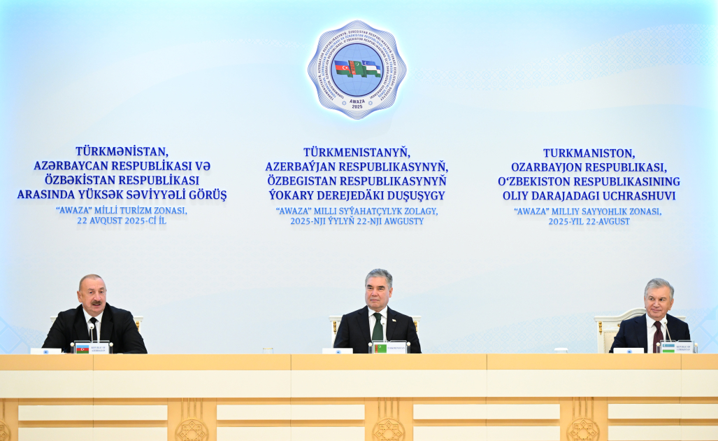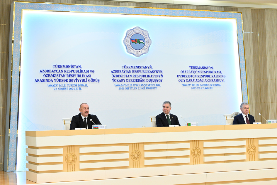 Ilham Aliyev, President of the Republic of Azerbaijan, Gurbanguly Berdimuhamedov, Chairman of the Halk Maslakhaty of Turkmenistan, and Shavkat Mirziyoyev, President of the Republic of Uzbekistan, delivered a joint press statement on August 22 in Turkmenbashi regarding the outcomes of the high-level meeting between Turkmenistan, the Republic of Azerbaijan, and the Republic of Uzbekistan.