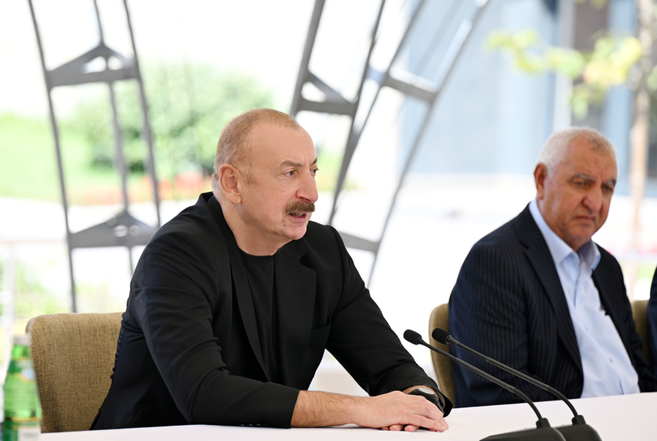 Our job is to build. They have destroyed all our cities and villages. There was not a single safe building left in the city of Kalbajar. There was not a single building left in any village of Kalbajar. It was mere barbarity. It was an inhuman act, and it was done not by one person, not by 10 people, but en masse. They should deal with these issues and see what kind of society Armenia lives in. The society that made looting its main source of income during the years of occupation. This society is sick, and I am saying this openly. I do not want to insult anyone. What had we done to them? What evil acts had we committed to deserve such brutality? Entire cities and villages were destroyed, mosques were destroyed and desecrated, people were murdered, killed and burned. Even after the Second Karabakh War, they asked us for some time through mediators to collect their belongings. And we even gave them time. What did they do? They burned everything and cut down trees. How can a person do this? After all, it was not only the leaders of the separatists who did this. They did it en masse. In other words, we must know who we are facing and who our neighbor is. We must never forget our past and be on the lookout. I am sure that all these factors will enable us to always have the upper hand. I am saying this again, we declare it as a victorious people. We will not forget that evil and brutality. But we do not intend to wage war with anyone from now on. If we face a threat, then everyone will still see our iron fist. Our meeting around these beautiful buildings today is also greatly symbolic. They destroyed this place, but we built it. And I congratulate you on this occasion again. Live here comfortably! I wish you good health and the best of luck. Thank you.