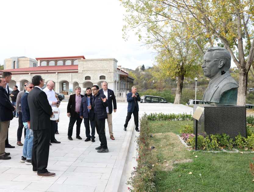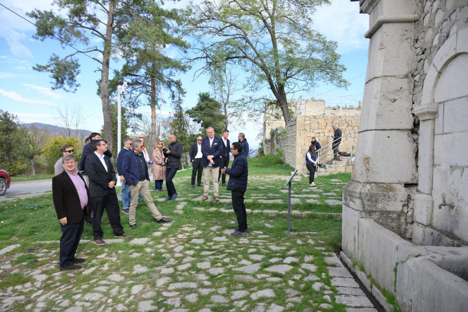 On October 23, the travelers explored Shusha and visited bullet-riddled monuments of prominent Azerbaijani figures — Khurshidbanu Natavan, Bulbul, and Uzeyir Hajibayli. They also saw the “Khan Gizi” Spring, the walls of Shusha Fortress, and the Yukhari Govhar Agha Mosque. They were briefed on the city’s history, its condition during the occupation, and the ongoing reconstruction and restoration efforts.