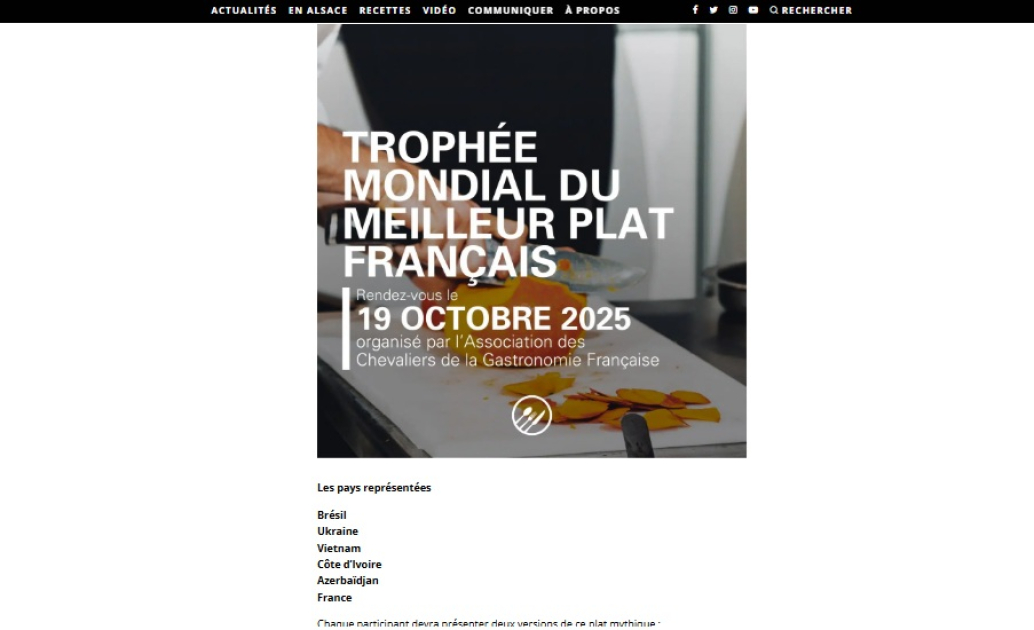 En el centro de exposiciones Parc des Expositions, ubicado en la ciudad francesa de Nantes, se celebró la Copa del Mundo al mejor plato de la cocina francesa en el marco de la exposición Serbotel. La cocinera azerbaiyana obtuvo el segundo lugar en la competencia. Los participantes prepararon el clásico plato de la cocina francesa del siglo XVII bœuf bourguignon en dos versiones: tradicional y moderna.