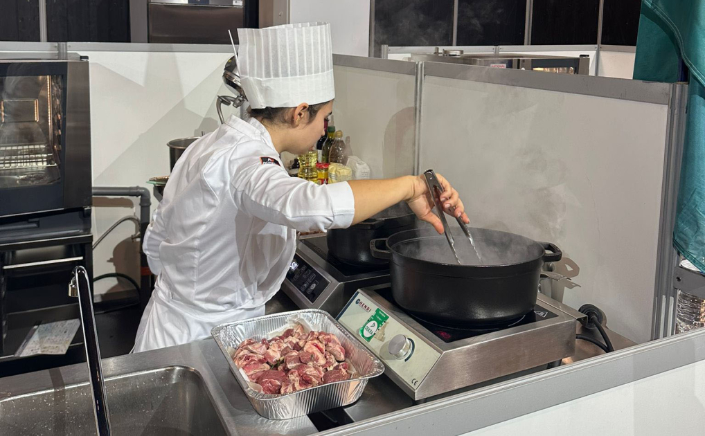 Según informa AZERTAC, la representante de nuestro país en la Copa, Bahar Agamalova, graduada del Instituto Paul Bocuse en Francia, combinó las ricas tradiciones culinarias de Azerbaiyán con el plato bœuf bourguignon.