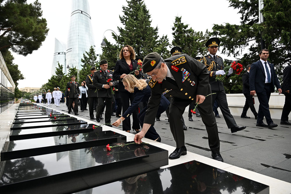 Ensuite, arrivés à l’Allée des Martyrs, les membres de la délégation ont honoré la mémoire des fils et des filles héroïques de la Patrie qui avaient sacrifié leur vie dans la lutte pour l’indépendance et la souveraineté de l’Azerbaïdjan, déposant des fleurs sur leurs tombes. Une gerbe a été déposée devant la flamme éternelle.
