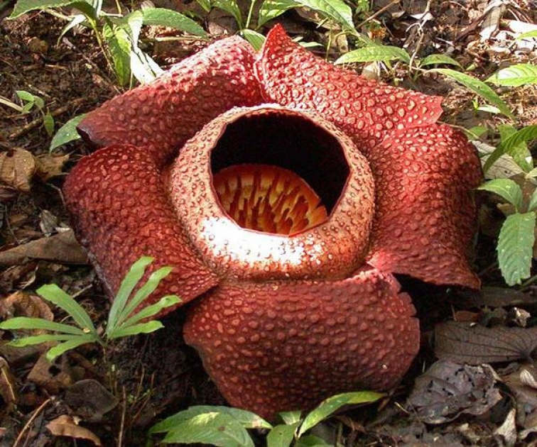 Это род удивительных растений, которые не образуют ни корней, ни стеблей, ни листьев, произрастает на островах Юго-Восточной Азии (Ява, Суматра и др.). Раффлезия (Rafflesia) живет, паразитируя в тканях других растений, обычно в роли "хозяина" выступают лианы. Это растение выделяется внушительными размерами цветка, чей диаметр может превышать 1 метр, а масса - более 10 кг. Скопления таких цветков напоминают что-то инопланетное. Только вот аромат у них не порадует эстета - цветы обладают запахом схожим с тухлым мясом. Неудивительно, что такой аромат притягивает мух, которые и становятся основными опылителями цветка. Да и цветовая гамма растения сильно напоминает кусок мяса, со свойственными ему прожилками и хрящами. Интересно, что жители Суматры издавна используют раффлезию в лекарственных целях.