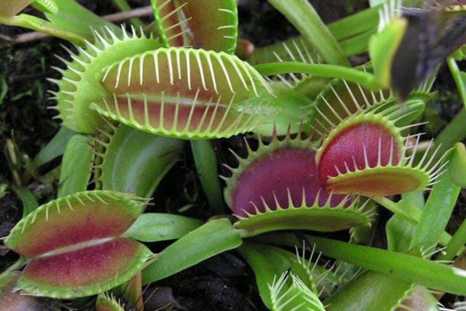 Это растение-убийца еще более удивительное, так как предпринимает намного более активные действия по захвату добычи. Листья растения (Dionaea muscipula) являются своеобразными челюстями, которые захлопываются, пленяя не только насекомых, но даже улиток и лягушек. Переваривание пищи занимает около 10 дней, в среднем за время жизни растения в ее челюсти попадает 3 насекомых. Произрастает мухоловка в умеренной зоне, на Атлантическом побережье США.
