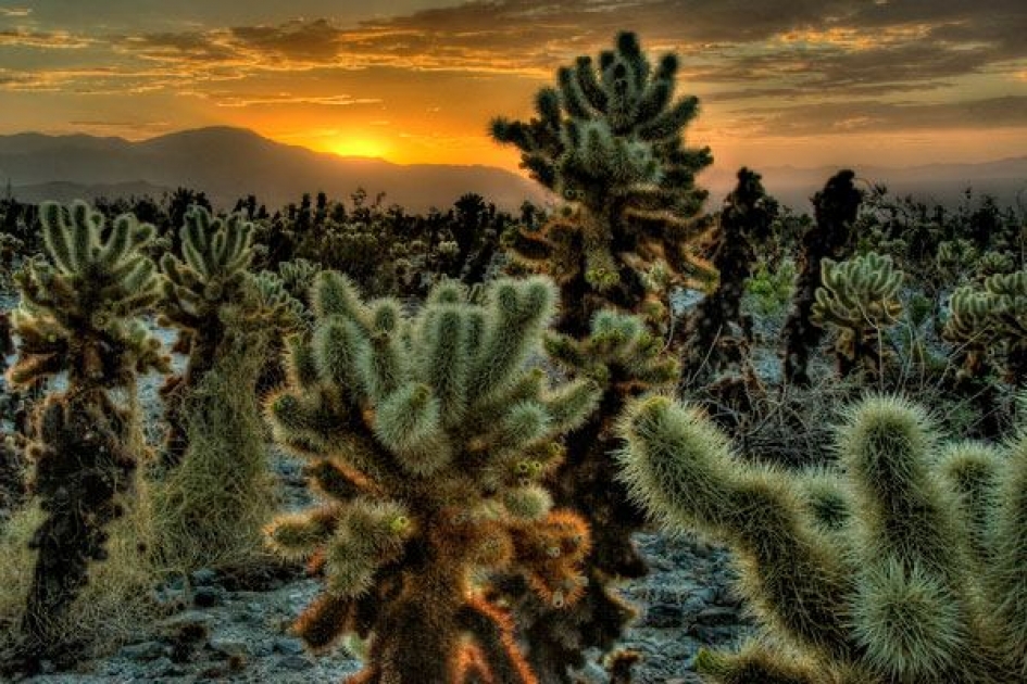 Это один из самых удивительных видов из рода Опунции семейства Кактусовых. Обычно в местности, где растет опунция Биджелоу (Opuntia bigelovii), можно увидеть большое число пушистых двухметровых кактусов. Когда заходит солнце - это выглядит просто фантастически. У человека, находящего тут, может создаться впечатление, что он в составе космической экспедиции посетил другую планету, вокруг же находятся неизвестные формы жизни. Опунция ценна своими плодами, ее также используют в виде живой изгороди и в качестве корма для животных.