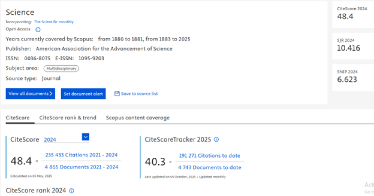 Журнал Science (IF: 45.8) входит в список журналов первого квартиля баз данных Web of Science и Scopus.