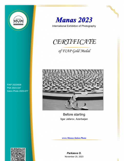 В фотоконкурсе MANAS 2023 в Кыргызстане приняли участие 224 фотографа из разных стран мира. Фотография Before starting была удостоена золотой медали FIAP, а две другие работы почетных лент фотосалона.