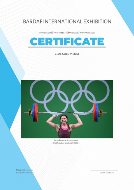 Как сообщает АЗЕРТАДЖ, фотоконкурс BARDAF в Словакии набрал 1522 работы 121 участника из 44 стран мира. Две работы фотокорреспондента Emotions of a weightlifter и Water Polo, Tribune of Journalists, снятые на Олимпийских играх 2016 года в Бразилии удостоены золотых медалей фотоклуба.
