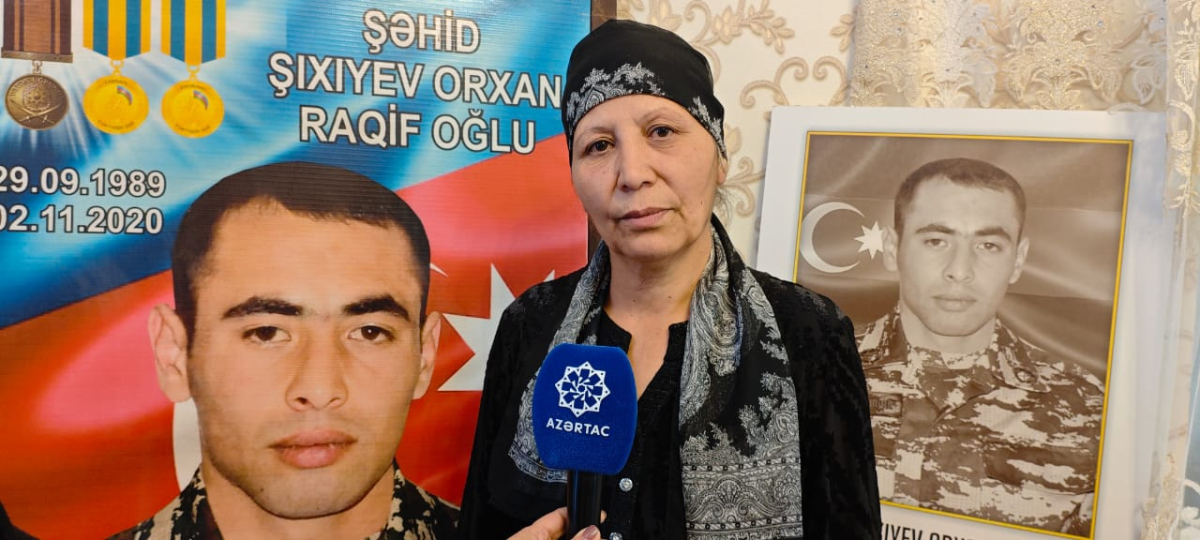 «26 октября мой сын стал шехидом 44-дневной Отечественной войны. 2 ноября был похоронен на Шехидляр хиябаны в Дашкесане. Я вырастила достойного, патриотичного сына. Он отдал жизнь за Родину, и я горжусь им. Орхан ушел на фронт с трехцветным флагом на плечах и вернулся покрытый им. Да хранит Всевышний Азербайджан!», — сказала мать героя.