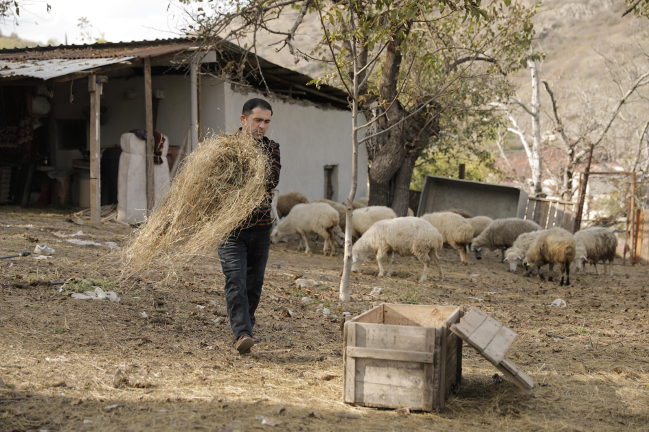 Сначала представители СМИ посетили хозяйство жителя села Ханйюрду Ходжалинского района Эльбруса Аббасова. Он создал овцеводческое хозяйство, будучи обеспечен активами в рамках программы самозанятости.