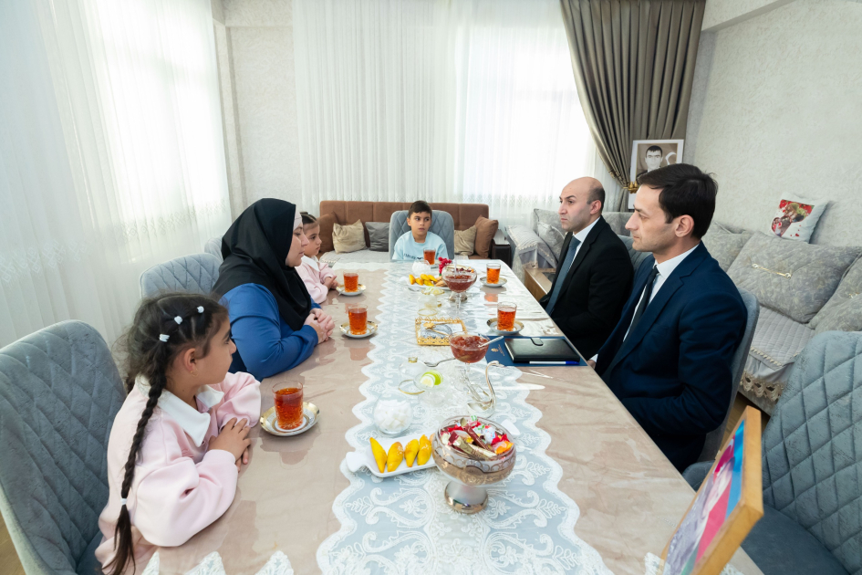 Заместитель председателя Правления Агентства социальных услуг при Министерстве труда и социальной защиты населения Парвиз Сафаров посетил семью шехида Отечественной войны Элькияра Мамедова, проживающую в Сабунчинском районе, и встретился с его детьми Абдуллой, Дамлой и Дуйгу.