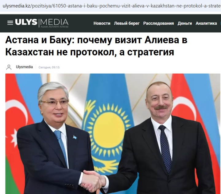 Издание Kazpravda.kz подчеркивает, что Казахстан и Азербайджан связывают многовековые узы братства, духовная и культурная общность.
