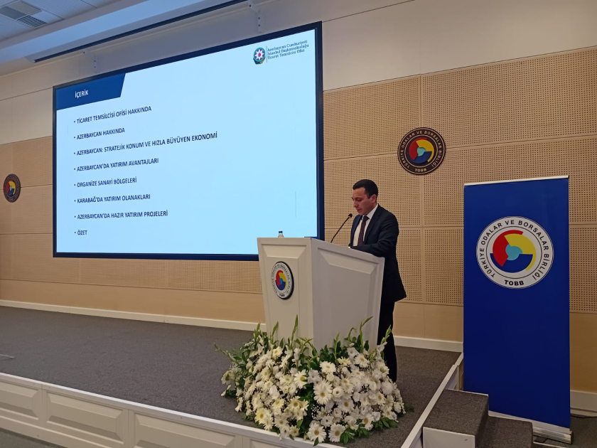 Торговый представитель Азербайджана в Турции Тамерлан Тагиев, обращаясь к предпринимателям, рассказал о возможностях, созданных для инвесторов в Карабахском и Восточно-Зангезурском экономических районах нашей республики. «Турецкие компании сегодня принимают активное участие в восстановлении освобожденных от оккупации районов Азербайджана, участвуют в различных государственных тендерах», - констатировал торгпред.