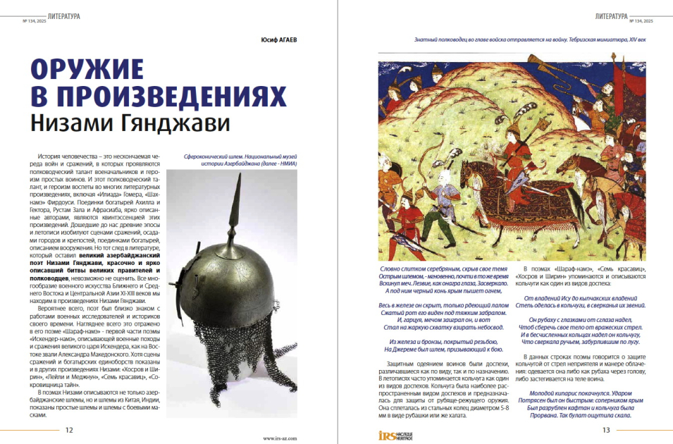 Особый интерес вызывает материал о произведениях Низами Гянджеви, в котором великий поэт рассматривается как источник сведений о военном деле. Автор статьи показывает, что описания боевых сцен в поэмах Низами позволяют реконструировать комплекс вооружения и военную тактику Востока XI–XIII веков.