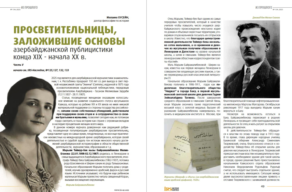 Вышел очередной номер издаваемого в Москве журнала «İrs-Наследие».