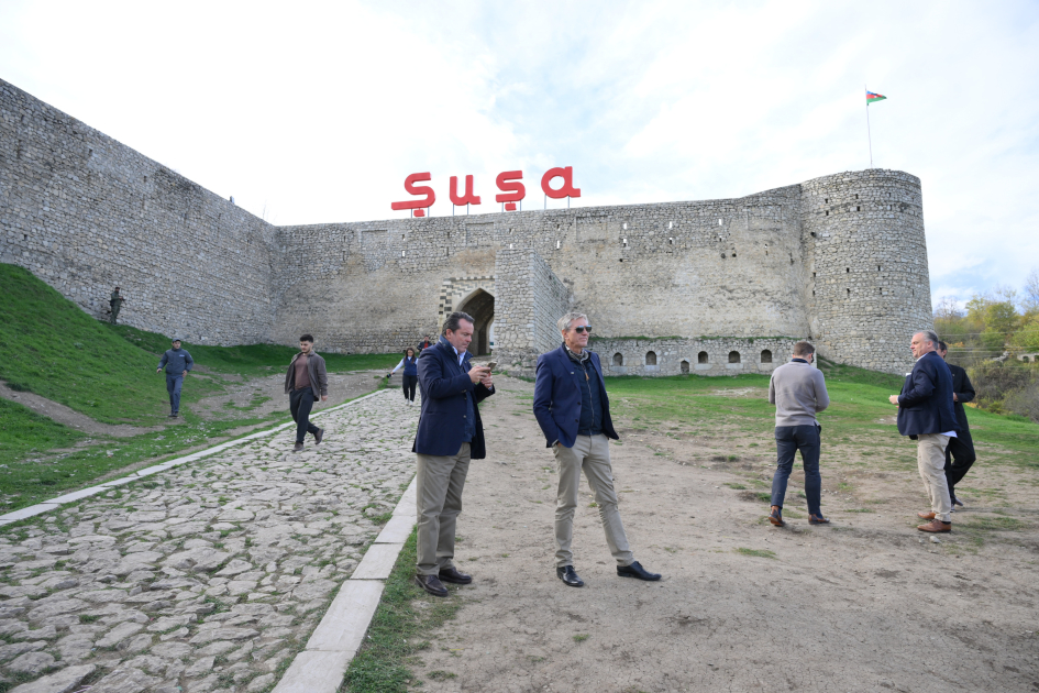 После этого гости посетили крепостные стены города Шуша. Им рассказали об истории города Шуша и строительстве крепостных стен. Было отмечено, что крепость, построенная ханом Карабаха Панахали ханом, на протяжении долгого времени защищала город от внешних вторжений и была символом неприступности. Во время оккупации крепостные стены подверглись армянскому вандализму. После освобождения города Шуша были проведены ремонтно-восстановительные работы в крепости.