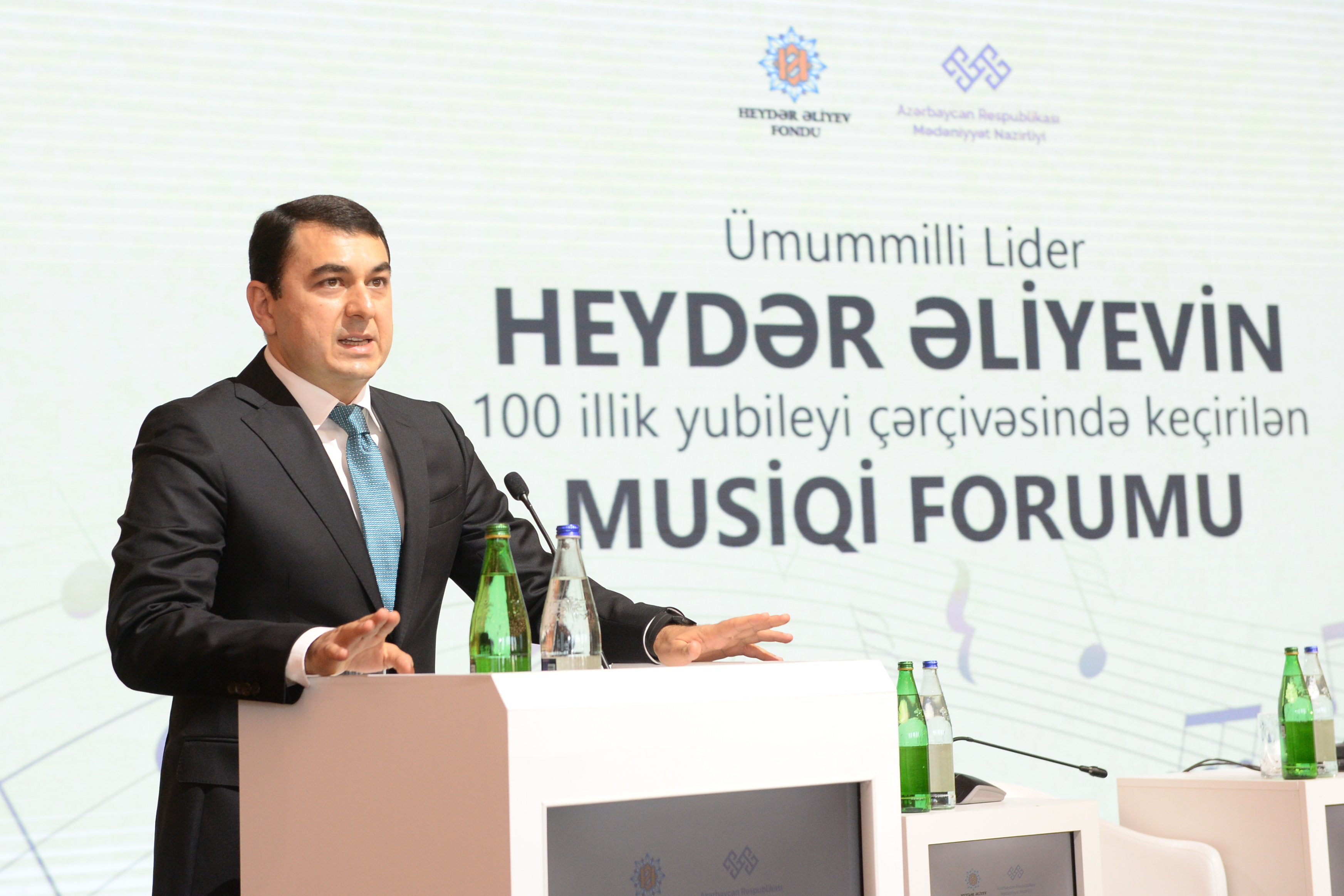 Выступая на мероприятии, министр культуры Адиль Керимли отметил, что в течение года были проведены форумы театра, кино, азербайджанского языка и литературы, посвященные 100-летию великого лидера. А сегодня впервые в нашей стране организуется музыкальный форум. «В результате дальновидной политики и мудрых решений великого лидера Гейдара Алиева в культурной жизни нашей страны произошли радикальные изменения. Гейдар Алиев в оба периода своего руководства республикой уделял особое внимание и заботу о музыкальном искусстве, как и о всех других областях. Подписанные им документы о развитии профессиональной музыки, его пристальный интерес к жизни и творчеству музыкантов, особая забота, которую он проявлял к ним, и сегодня приносят свои плоды. Поэтому организация Музыкального форума в рамках 100-летия великого лидера имеет большое значение», - подчеркнул министр.
