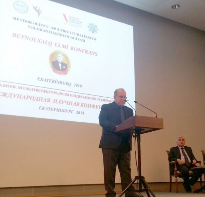 ADU-dan AZƏRTAC-a bildiriblər ki, aprelin 7-də Rusiyanın B.Yeltsin adına Ural Federal Universitetində “Heydər Əliyev: Multikulturalizm və tolerantlıq ideologiyası” mövzusunda birinci beynəlxalq elmi konfransın “AXC - Şərqdə ilk demokratik respublikadır” mövzusunda ilk bölmə iclası keçirilib.