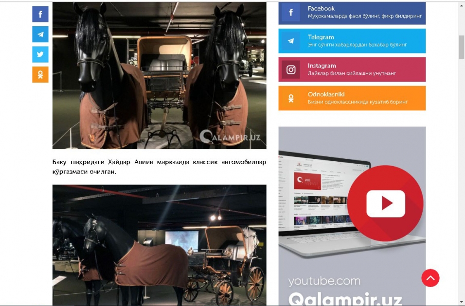 Özbəkistanın Qalampir.uz portalı Heydər Əliyev Mərkəzində nümayiş etdirilən klassik avtomobillər sərgisi ilə bağlı videoreportaj yayıb.