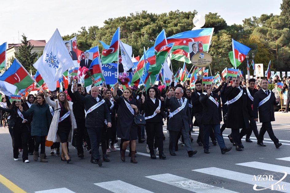 Tədbir sənaye müəssisələri, şəhərdə fəaliyyət göstərən idarə, müəssisə və təşkilatların kollektivlərinin keçidi ilə davam edib.
