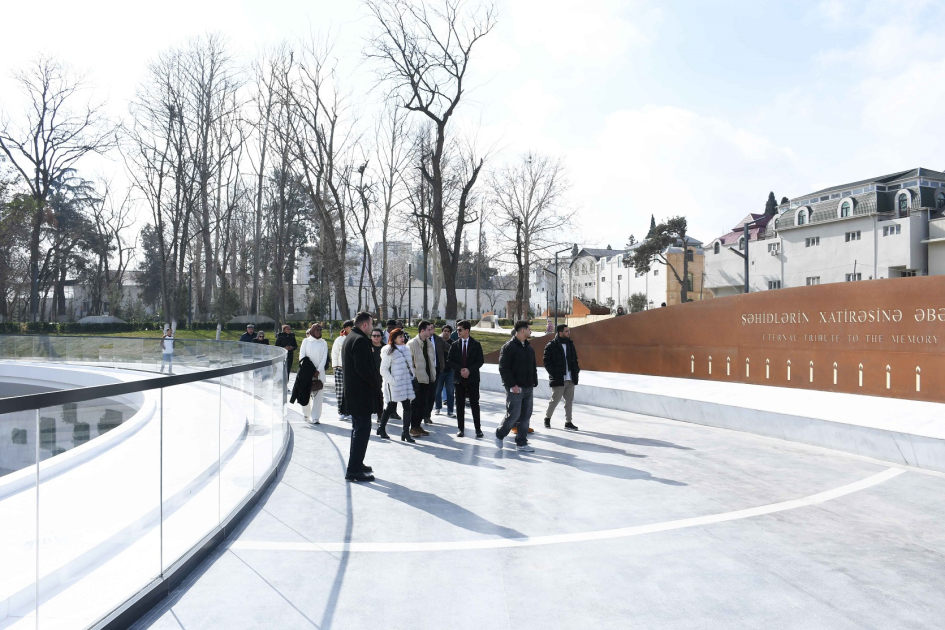 AZƏRTAC-ın bölgə müxbiri xəbər verir ki, ADNSU-da “Heydər Əliyev adına Beynəlxalq Təhsil Qrantı” proqramı çərçivəsində təhsil alan, 20 ölkəni təmsil edən 20 əcnəbi tələbədən ibarət nümayəndə heyəti Gəncə Memorial Kompleksini ziyarət ediblər. Bildirilib ki, Prezident İlham Əliyevin 2025-ci ildə açılışını etdiyi kompleks İkinci Qarabağ müharibəsi zamanı Ermənistanın raket hücumlarının qurbanı olmuş günahsız insanların əziz xatirəsini əbədiləşdirmək və müharibənin acı reallıqlarını gələcək nəsillərə çatdırmaq məqsədi daşıyır.