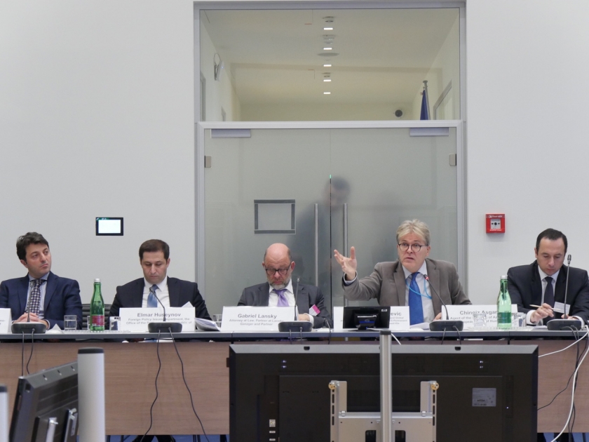 Müzakirələrdə Avropa İnsan Hüquqları Məhkəməsində Azərbaycan Respublikasının nümayəndəsi Çingiz Əsgərov məcburi köçkünlərin Avropa İnsan Hüquqları Konvensiyası çərçivəsində hüquqlarının təmin edilməsində Avropa İnsan Hüquqları Məhkəməsinin rolundan danışıb və bu xüsusda, məhkəmənin “Çıraqov və başqaları Ermənistana qarşı” işi üzrə çıxardığı hökmün əhəmiyyətini vurğulayıb. Çingiz Əsgərov, eləcə də öz doğma yurdlarını ziyarət edən zaman Ermənistan silahlı qüvvələri tərəfindən əsir götürülmüş azərbaycanlı məcburi köçkünlər Dilqəm Əsgərov və Şahbaz Quliyevin məsələsi barədə tədbir iştirakçılarını məlumatlandırıb və bu məsələdə Ermənistanın hüquqi məsuliyyətinə diqqəti cəlb edib. O, həmçinin Ermənistan silahlı qüvvələrinin 2016-cı ilin aprel ayında azərbaycanlı dinc sakinlərə və mülki obyektlərə qarşı məqsədyönlü irimiqyaslı hücumları nəticəsində mülki şəxslərin öldürülməsi, onların mülkiyyətinə ziyan vurulması hallarını qeyd edib, zərərçəkən insanların hüquqlarının təmin edilməsi istiqamətində Avropa İnsan Hüquqları Məhkəməsi çərçivəsində aparılan fəaliyyət barədə məlumat verib.