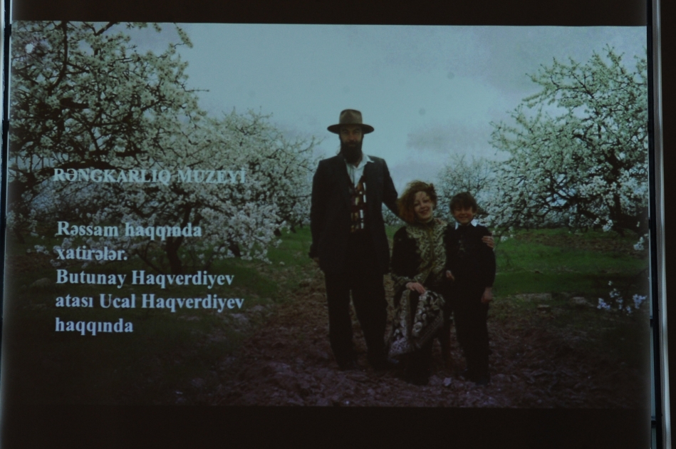 Butunay Haqverdiyevin çıxışı atasının əsərlərindən ibarət slaydlarla müşayiət olunub.