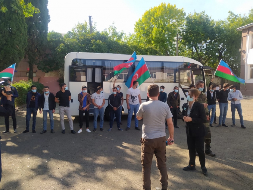 Səfərbərlik və Hərbi Xidmətə Çağırış üzrə Dövlət Xidmətinə gələn hərbi vəzifəlilər qələbə şüarları və alqış sədaları ilə cəbhəyə yola salınıblar.