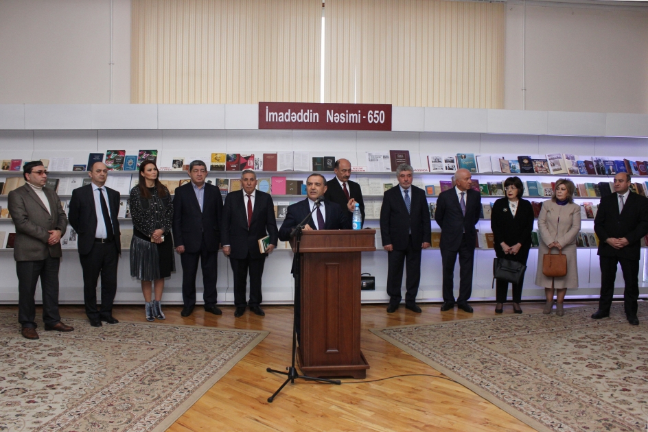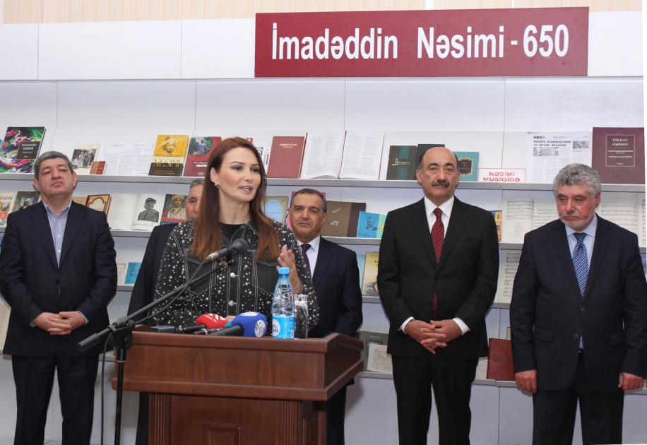 Bu il həm ölkəmizdə, həm də xaricdə müxtəlif tədbirlərin, sərgilərin, ədəbi-bədii axşamların təşkili, kitabların nəşrinin nəzərdə tutulduğunu diqqətə çatdıran nazir qeyd edib ki, hazırda Milli Kitabxanada Nəsiminin əsərlərindən ibarət kitab sərgisinin açılması və “Nəsimi - 650” daimi guşəsinin yaradılması bu qəbildən olan ilk tədbirlərdəndir. Burada çoxsaylı maraqlı materiallar toplanıb. Bu nəşr nümunələri və arxiv sənədləri həm mütəxəssislər, həm də kitabxananın oxucuları üçün maraqlı olacaq.