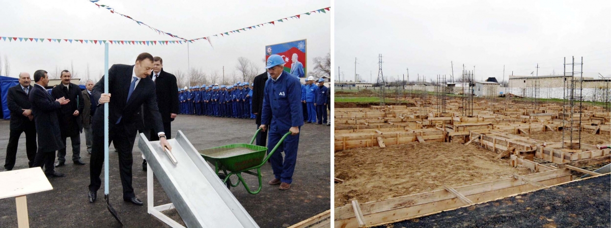 Sonra dövlətimizin başçısı tikintidə çalışan fəhlələrə yaxınlaşıb söhbət etdi, onlara yaradılmış şəraitlə maraqlandı, işlərində uğurlar arzuladı. Məlumat verildi ki, burada 120-dən çox fəhlə işləyir, ayda 200 manatdan çox maaş alırlar.