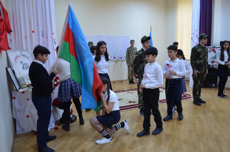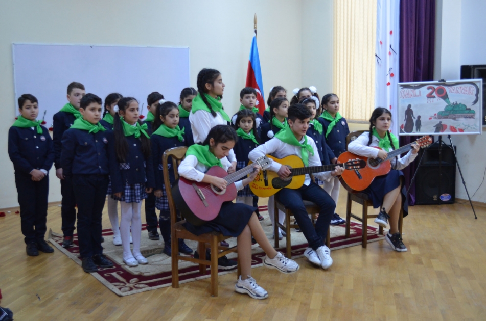 Sonra məktəb-liseyin şagirdləri 20 Yanvar faciəsi ilə bağlı ədəbi-bədii kompozisiya təqdim ediblər.