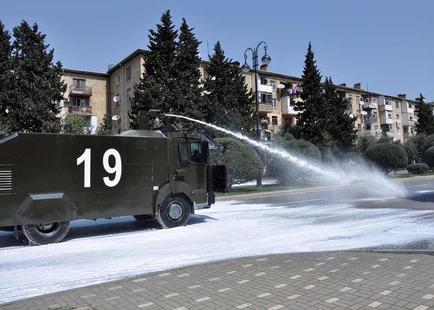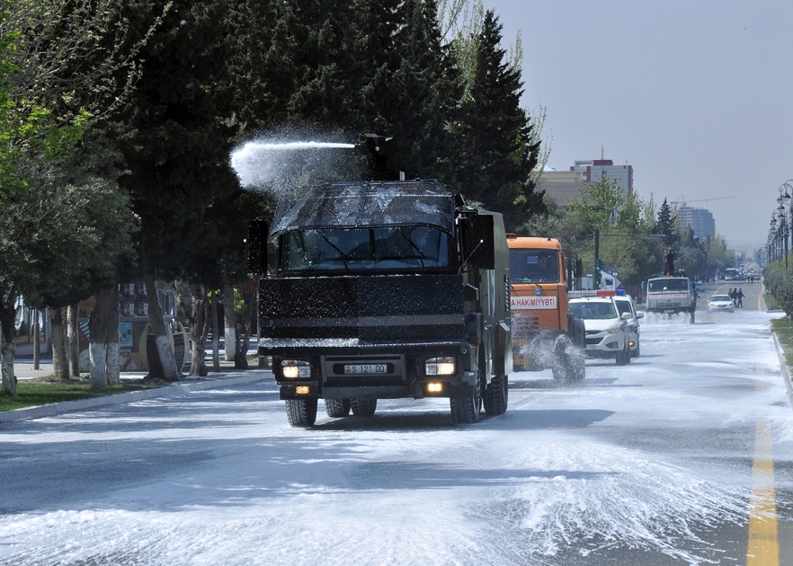 AZƏRTAC xəbər verir ki, şəhər kommunal xidmətləri tərəfindən gündəlik olaraq şəhərin küçə və prospektləri xüsusi texnika ilə dezinfeksiyaedici məhlullarla yuyulur. Dezinfeksiya tədbirlərinə Daxili Qoşunların xüsusi texnikaları da cəlb olunub.