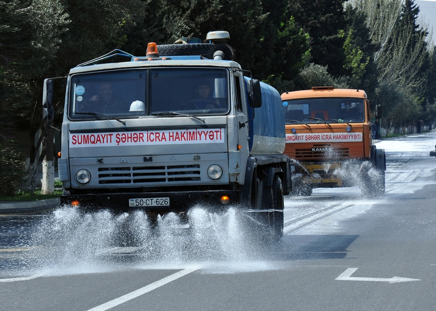 Sumqayıt Şəhər İcra Hakimiyyətindən verilən məlumata görə, küçələrdə, məhəllələrdə, ticarət şəbəkələrində, digər sənaye müəssisələrində dezinfeksiya işləri aparılır. Park və xiyabanlarda oturacaqlar, insanların ən çox istifadə etdiyi məkanlar olan bankların, marketlərin girişləri, dayanacaqlar, ictimai nəqliyyat vasitələri dezinfeksiyaedici məhlullarla təmizlənir.