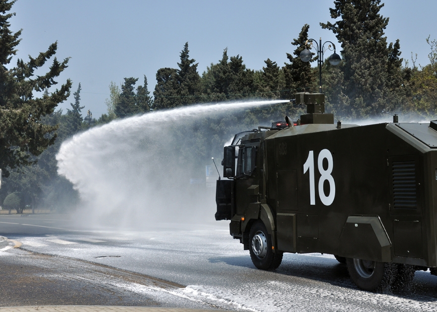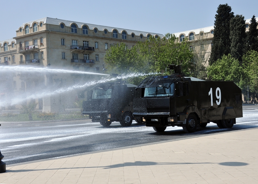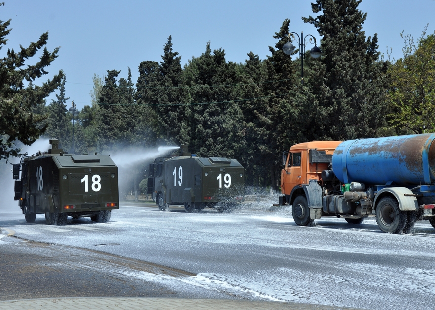 Sumqayıtda küçələri xüsusi məhlulla yumaq üçün Daxili Qoşunların texnikaları da cəlb olunub