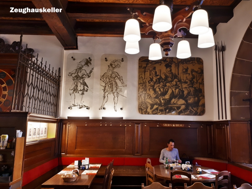 Sürixdə son şam yeməyini Köhnə şəhərdə zəngin tarixi və ənənələri olan “Zeughauskeller” restoranında yedik. Restoranın binası hələ Kolumbun Amerikanı kəşf etməsindən əvvəl - 1487-ci ildə inşa edilib. Əvvəlcə bu binadan cəbbəxana, yəni silah anbarı kimi istifadə olunub. Restoran kimi 1926-cı ildən fəaliyyətə başlayıb. Silah indi də restoranın tərtibatının əsas mövzusudur. 2006-cı ildən burada Vilhelm Tellin arbaletinin reproduksiyası nümayiş etdirilir. Bu da təsadüfi deyil. 1644-cü ilə aid inventarlaşdırma siyahısına görə, İsveçrənin milli qəhrəmanının əfsanəvi arbaleti məhz bu yerdən asılıb. Sevindirici haldır ki, restoranın menyusu müxtəlif dillərdə tərtib olunub. “Sürixsayağı dana əti” və “Dana qaraciyəri” restoranın şah yeməklərindən sayılır. Amma biz öz damaq dadımıza uyğun olan faraş kartof ilə klyarda balıq, desert olaraq ştrudel sifariş etdik, tox və məmnun halda oranı tərk etdik.