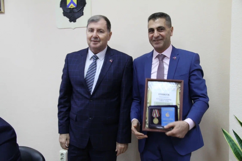 “Azərbaycanlılar birliyi” vilayət təşkilatının sədri Məmməd İsgəndərov tədbir iştirakçılarına xatirə hədiyyələri - Azərbaycanın tarixini və mədəni irsini əks etdirən “Azərbaycan Böyük Vətən müharibəsi illərində” və “Bakı qalası İçərişəhər” kitablarını təqdim edib.