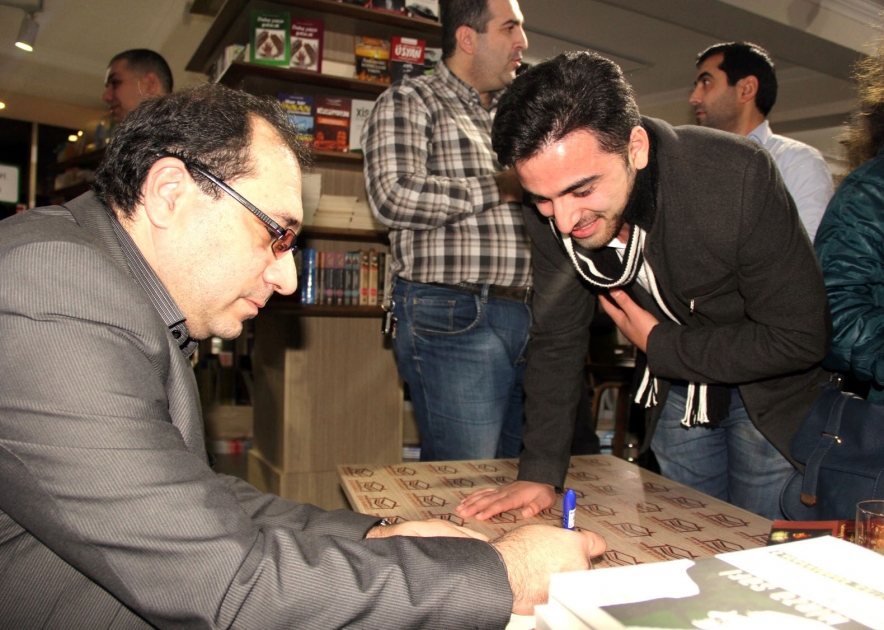 Sonda yeni şeirlərini oxuyan İ.Fəhmi imzası ilə kitablarını oxuculara təqdim edib.