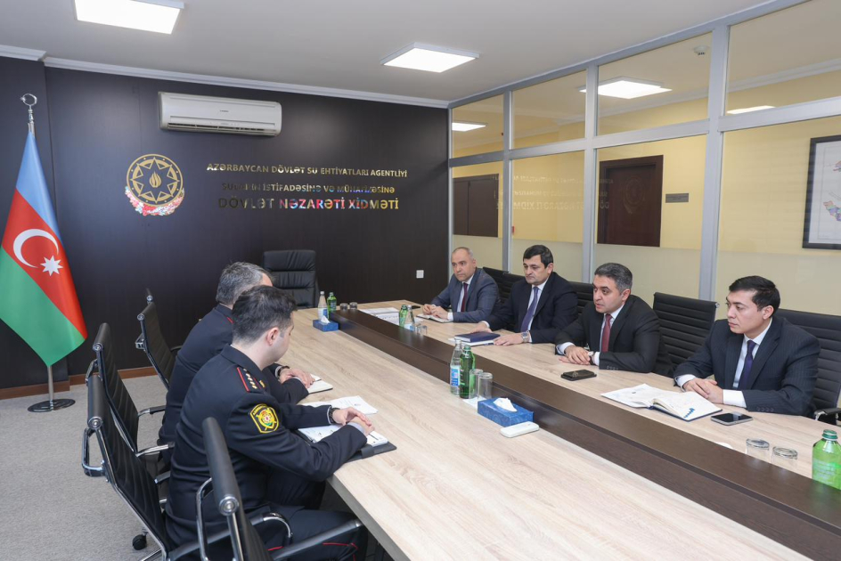 Su obyektlərinə qanunsuz müdaxilələrin qarşısını almaq və nəzarət tədbirlərini gücləndirmək məqsədilə Azərbaycan Dövlət Su Ehtiyatları Agentliyi yanında Suların İstifadəsinə və Mühafizəsinə Dövlət Nəzarəti Xidməti ilə Azərbaycan Respublikası Daxili İşlər Nazirliyinin Nəqliyyatda Baş Polis İdarəsinin Su Nəqliyyatında Polis İdarəsinin rəhbər şəxsləri görüş keçirib.