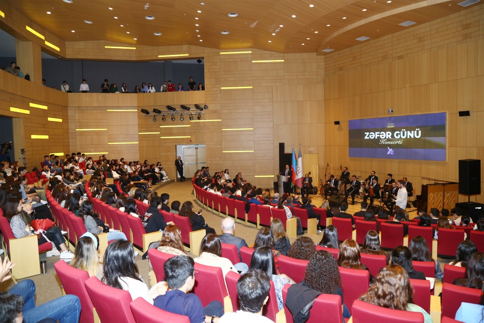 Milli qürurun, şərəfin, ləyaqətin zəfər çaldığı tarixi günə həsr olunmuş genişmiqyaslı konserti izləyənlər sırasında universitetin tələbə-müəllim və işçi heyəti olub.