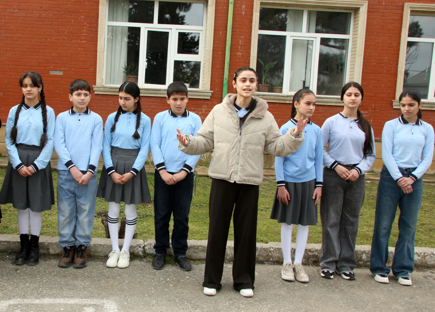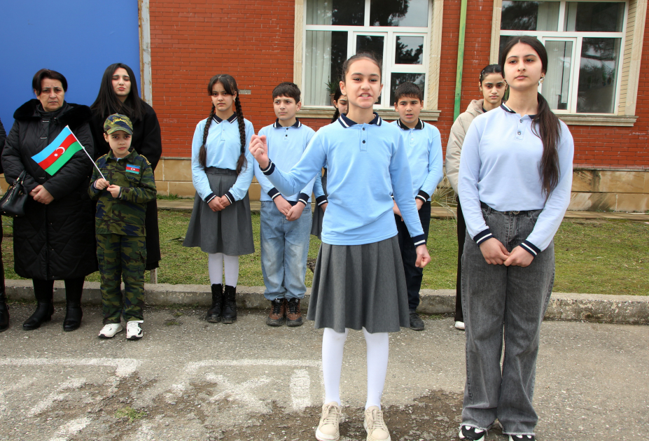 Sonda məktəblilər ədəbi-bədii kompozisiya nümayiş etdiriblər.