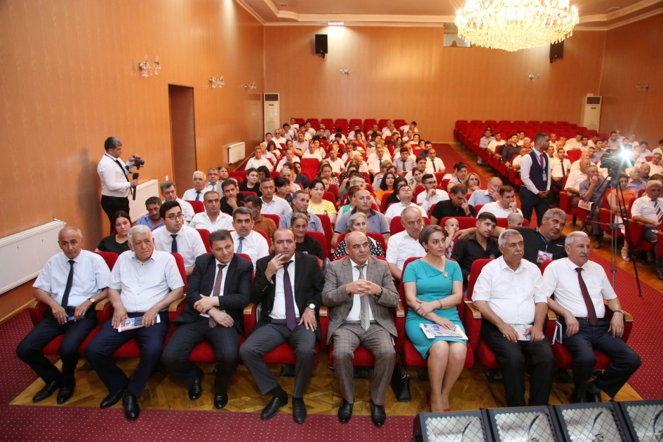 AZƏRTAC-ın bölgə müxbiri xəbər verir ki, bu münasibətlə keçirilən yubiley tədbirinin iştirakçıları əvvəlcə ümummilli lider Heydər Əliyevin Ağcabədi şəhərinin mərkəzi meydanındakı abidəsi önünə gül dəstələri düzərək, xatirəsini ehtiramla yad ediblər.